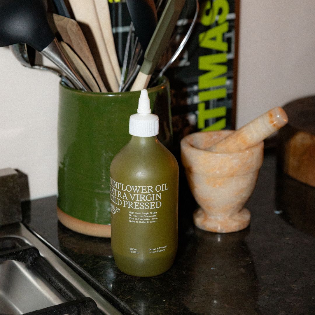 Canterbury-grown, cold-pressed sunflower oil for the modern kitchen. Designed to be used again and again.